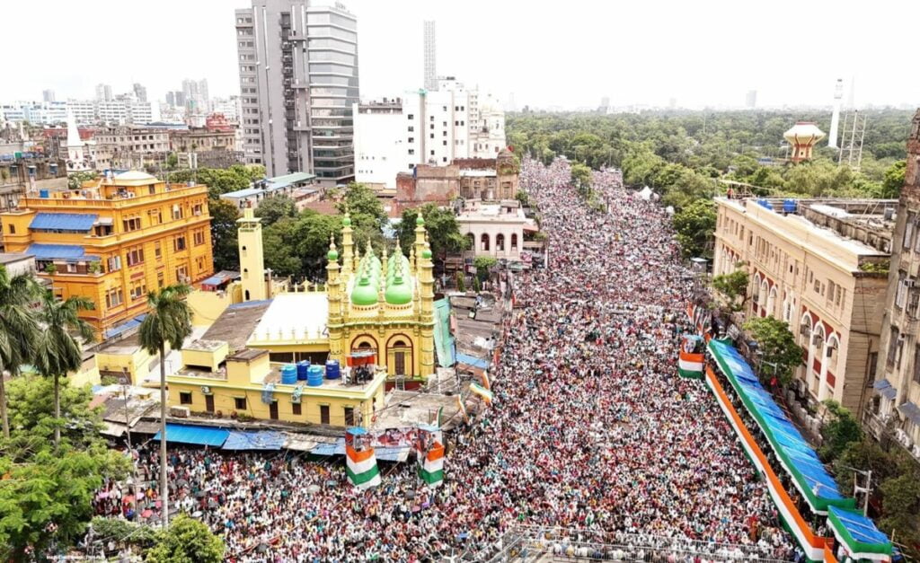 কেয়া সরকার : চব্বিশের শহীদের মঞ্চ থেকে তৃণমূলের সেকেন্ড ইন কমান্ড অভিষেক বন্দ্যোপাধ্যায় তাঁর বক্তব্যের প্রথম থেকে শেষ পর্যন্ত দফায় দফায় বিজেপিকে কড়া আক্রমণ করলেন। তাঁর বক্তব্যে উঠে আসে নিট কেলেঙ্কারির প্রসঙ্গ। বিজেপির সাম্প্রদায়িক বিভাজনের প্রসঙ্গ টেনে অভিষেক বলেন, আমাদের একটাই ধর্ম মানব ধর্ম। “আমরা মানব সেবায় বিশ্বাস করি। আমরা ধর্ম বাড়িতে ঠাকুরের ঘরে বসে করি।