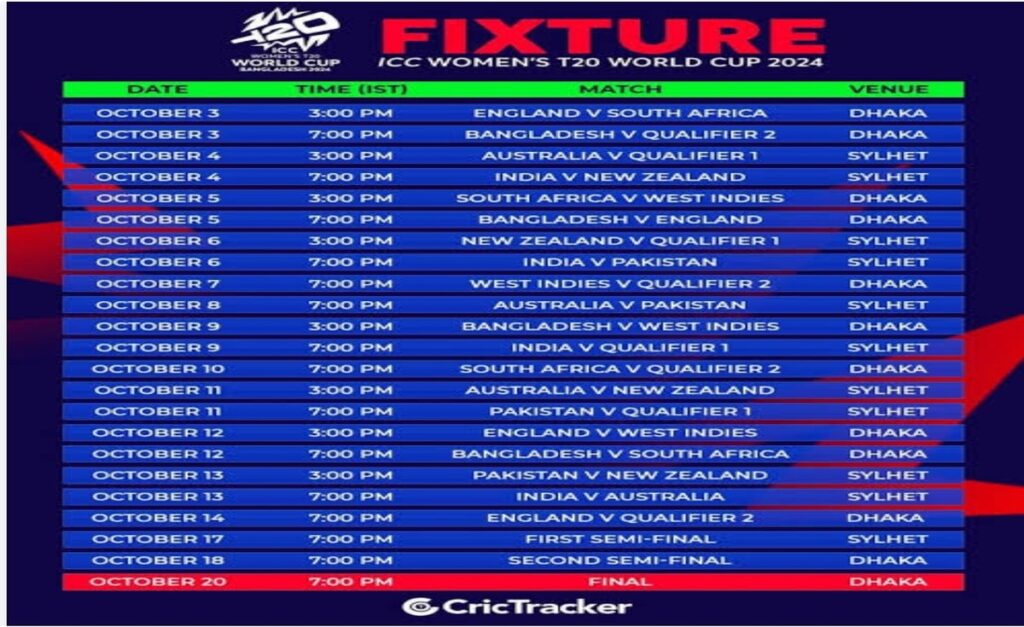 তবে আইসিসি তরফে জানানো হয়েছে, মহিলাদের টি-২০ বিশ্বকাপ শুরু হবে ৩ অক্টোবর থেকে শুরু হয়ে চলবে ২০ অক্টোবর পর্যন্ত। মোট ১০টি দল এই টুর্নামেন্টে অংশ গ্রহণ করবে।