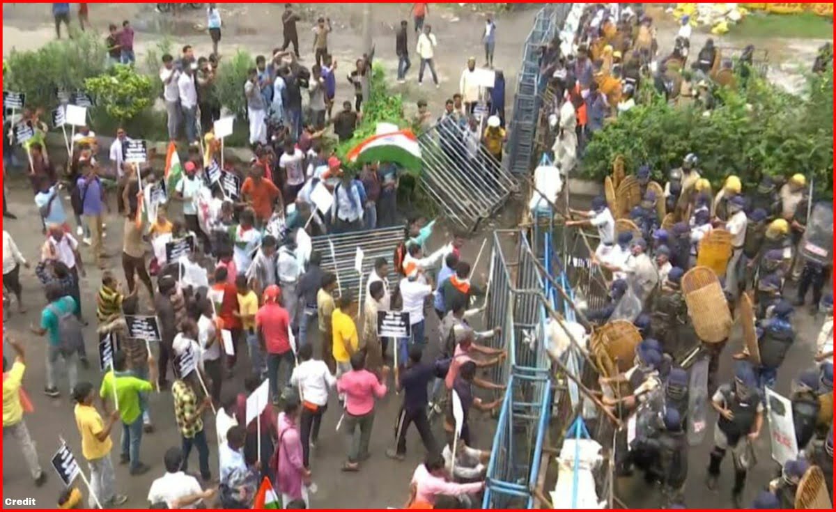 Kolkata Nabanna Protest : Tear gas, water cannon used after crowd breaks barriccades